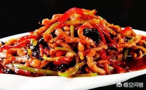 鱼香肉丝——以鱼香调味而得名,菜色泽红润、富鱼香味,吃起来具有咸甜酸辣兼备的特点,肉丝质地柔滑软嫩。是下饭菜的必选。