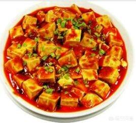 麻婆豆腐,,是四川省传统名菜之一,属于川菜。主要原料为配料和豆腐,材料主要有豆腐、牛肉末(也可以用猪肉)、辣椒和花椒等。麻来自花椒,辣来自辣椒,这道菜突出了川菜“麻辣”的特点。其口味独特,口感顺滑。如今,麻婆豆腐远渡重洋,在美国、加拿大、英国、法国、越南、新加坡、马来西亚、日本、澳大利亚等国安家落户,从一味家常小菜一跃而登上大雅之堂,成了国际名菜。