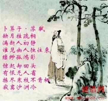 《卜算子·黄州定慧院寓居作》是宋代文学家苏轼的词作。此词上阕写鸿见人,下阕写人见鸿,借月夜孤鸿这一形象托物寓怀,表达了词人孤高自许、蔑视流俗的心境。全词借物比兴,写景兴怀,托物咏人,物我交融,含蕴深广,风格清奇,为词中名篇。